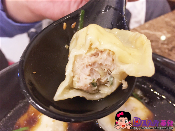 餛飩麵湯頭喝起來味道OK,餛飩也可以跟湯餃比啦(叫S哥咬一口給我照,他沒事又去沾到酢醬...暈)!不用擔心老闆大小心,只顧好湯餃不顧好餛飩,說真的,餛飩要煮到一點味道都沒有也是奇耙,所以餛飩麵絕對是SAFE名單,但是捏~我這個人口味比較重,看不慣湯沒有顏色,所以就跑去加辣醬了...