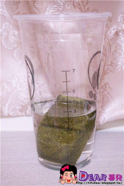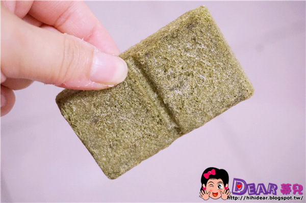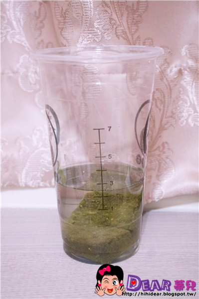 打開來看每一包有兩個綠果磚塊,聞味道我覺得很識曾相識,有點像我們再喝苜蓿芽或者是綠麥汁的植物味,但是又比那個更好聞,比較像是抹茶+養樂多的香味。(總之不是那種難聞像草地上葉子榨成汁的味道)