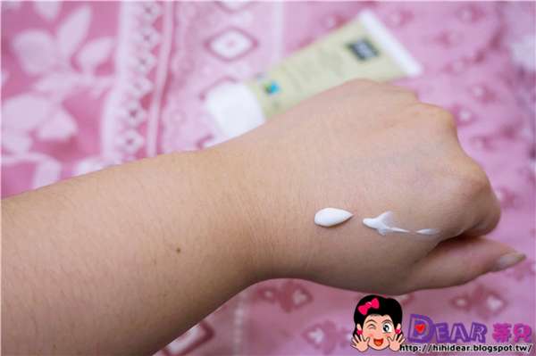 我朋友給我時候說它質地比較水狀,但我個人覺得還好不會呀!剛開始推開時還是有點白白的,我以為會很難推開要推很久,我對要推很久才會吸收的護手霜很沒好印象,因為那種多半都會偏油,也比較黏膩,這個完全都不會!!!把乳霜推開直到透明沒有白色樣子後,它整個吸收蠻快的且很清爽。沒有黏膩感,手也不會覺得油油的~(我真的有點相見恨晚了)