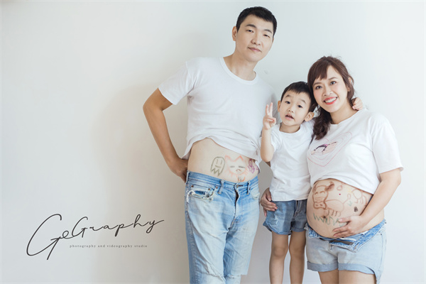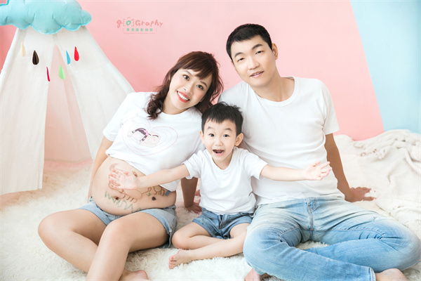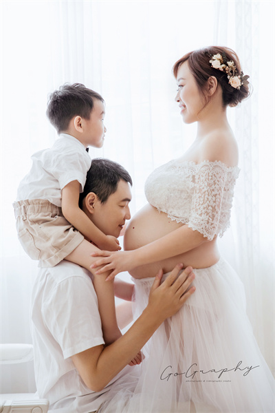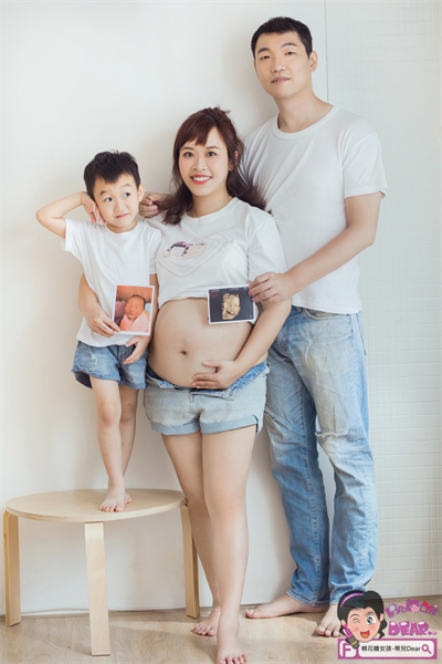 這組照片是小清新路線,而且已經有小孩的人,才能在拍孕婦寫真時,擁有這種全家服入鏡照吧! XDD